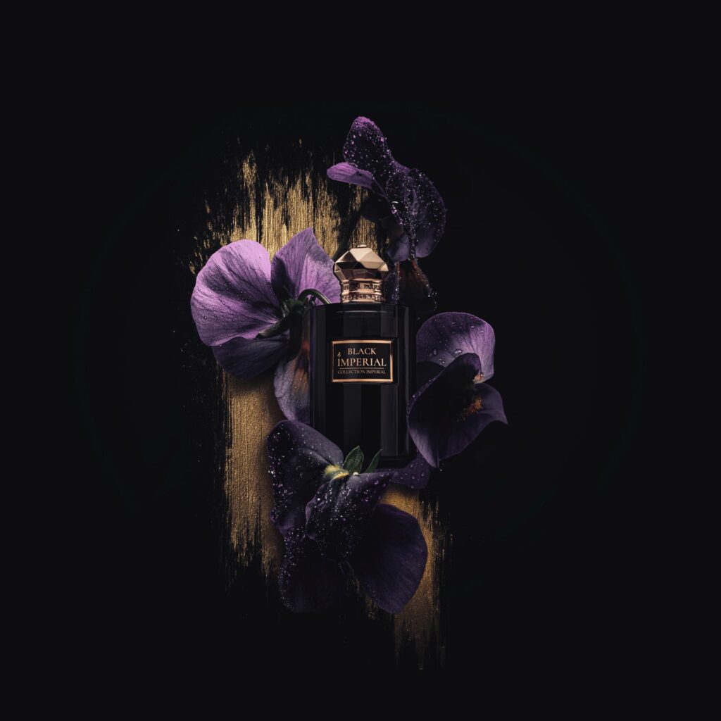 Black Impérial opens at the threshold of a black marble throne silent, untouchable, crowned with gold. A spark of bergamot pierces the shadow, and Parma violet reveals itself elevated into the unprecedented. Darker, rarer, imperial, draped like velvet over absolute authority.