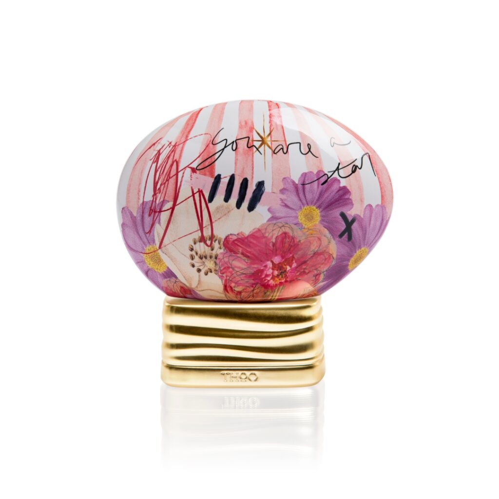 A composition with an enveloping creaminess, in which the scarlet notes of black cherry and wild strawberry blend with champagne in a seductive cocktail and alternate with the voluptuous petals of rose and jasmine, then explode into a background of warm, enchanting scents.
